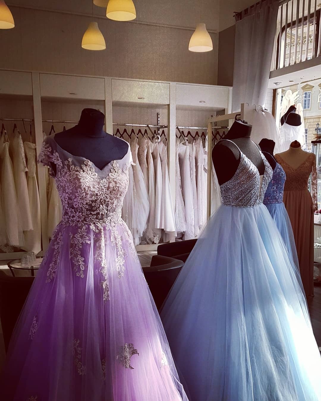 V salonu Kleopatra Teplice naleznete ve stálé nabídce něco kolem 150 ks svatebních šatů, spoustu šatů společenských různých typů od velikosti 30 do 60, v prodloužené i zkrácené délce. Pánské obleky a doplňky.